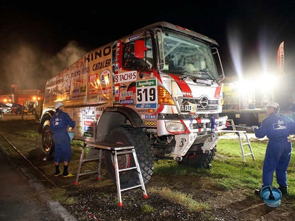 HINO TEAM SUGAWARA's two HINO500 Series trucks finished this stage with strength to spare. Car 2, crewed by Teruhito Sugawara and Hiroyuki Sugiura, finished the day at 23rd overall in the Trucks category, and top in the Under 10-litre Class. Car 1, crewed by Yoshimasa Sugawara and Mitsugu Takahashi, finished at 47th overall and 4th in the Class.