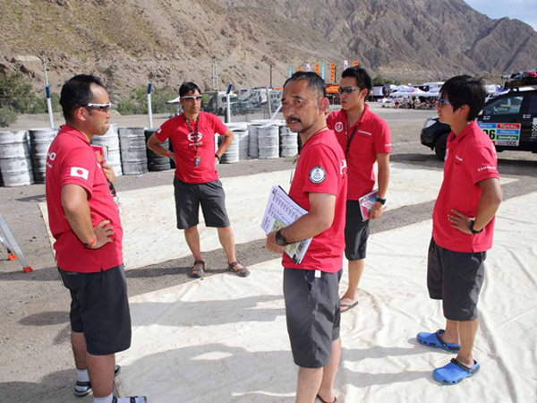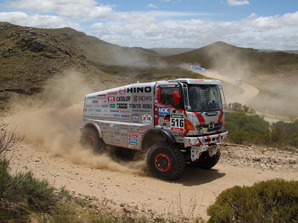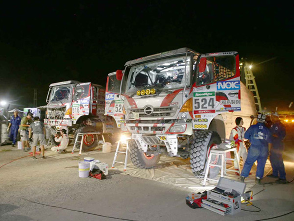 On January 4, HINO TEAM SUGAWARA's HINO500 Series truck Car 2, piloted by the Teruhito Sugawara and Hiroyuki Sugiura crew, came in at 23rd place in overall rankings in the first SS of the race (1st place in the Under 10-litre Class), arriving at the bivouac in Villa Carlos Paz at around 9:30pm.