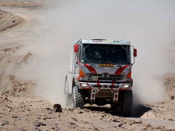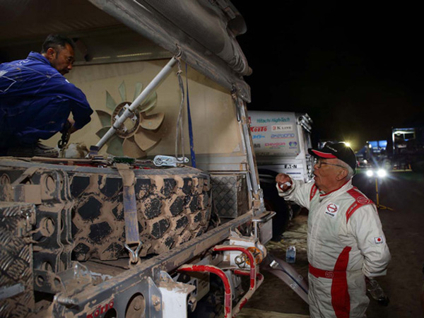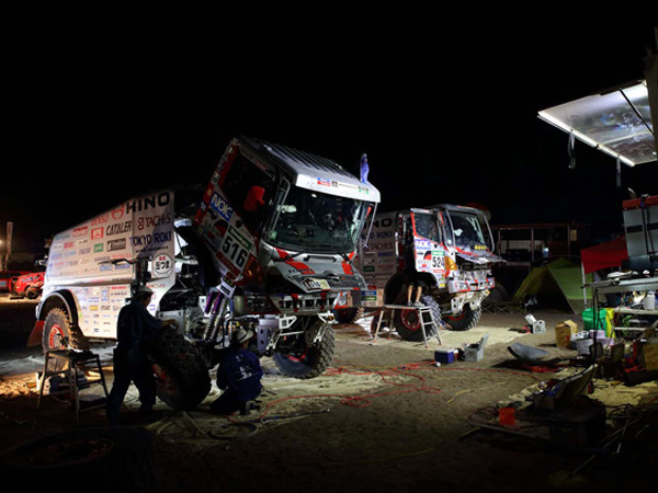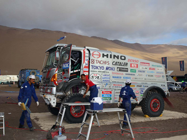 January 8, Car 1 crewed by Yoshimasa Sugawara, Yoko Wakabayashi, and Katsumi Hamura, encountered no major problems and arrived at the bivouac in Antofagasta at around midnight after a day of racing. Mechanics inspected the truck through the night, and it left the bivouac in good shape together with Car 2 piloted by Teruhito Sugawara and Hiroyuki Sugiura.