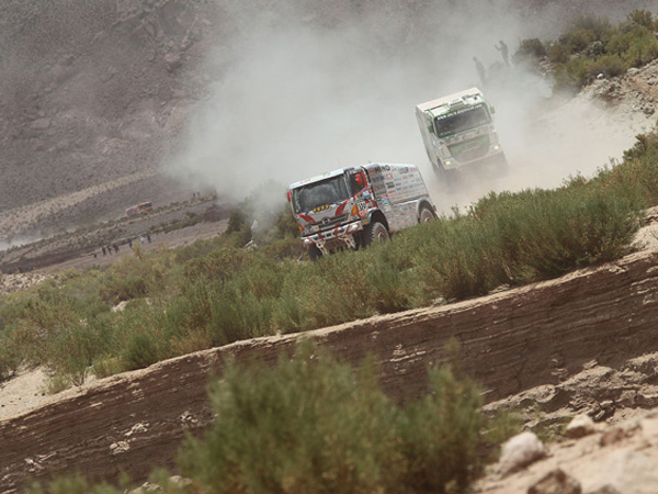 January 14 had the contestants travel from Calama to Salta. They crossed the Andes again back into Argentina from Chile on a 385km liaison route, and raced on a 371km SS in mountain areas in the northwestern part of Argentina. After finishing this SS, the Bikes category traveled on another liaison segment and headed for their marathon bivouac in Cachi. As a result, the Cars and Trucks categories were the only ones seen at the bivouac.