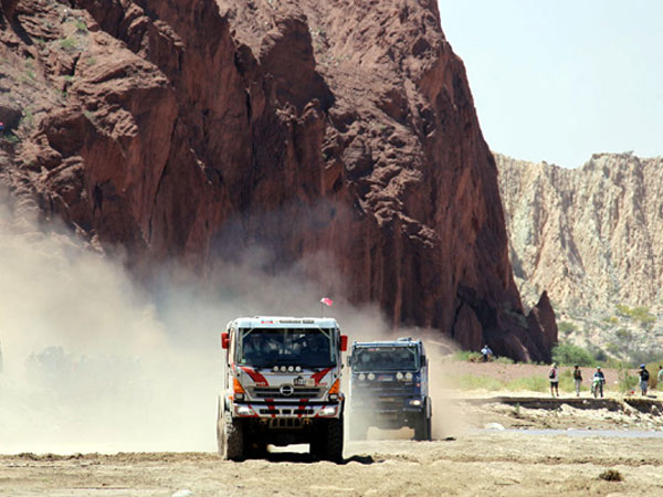 January 10, Dakar Rally 2014 contestants raced on the final stage of the first half of the race between San Miguel de Tucumán and Salta, Argentina. Car 2, the HINO500 Series truck entered by HINO TEAM SUGAWARA, finished the SS at 26th position overall, and Car 1 finished 7 minutes and 12 seconds behind Car 2 at 40th place. As a result, Car 2's ranking in the overall Trucks category remains unchanged at 13th, with Car 1 ranking at 27th place. They continue to maintain their 1-2 position in the Under 10-litre Class at the end of the first half of this rally.