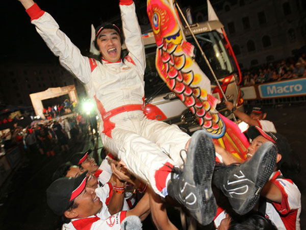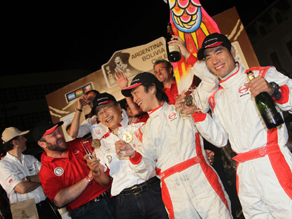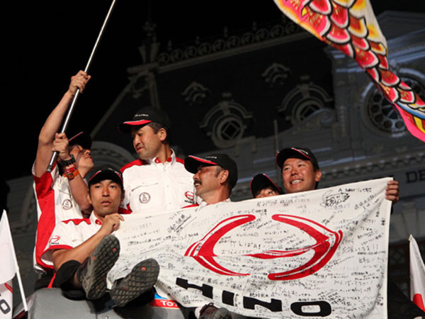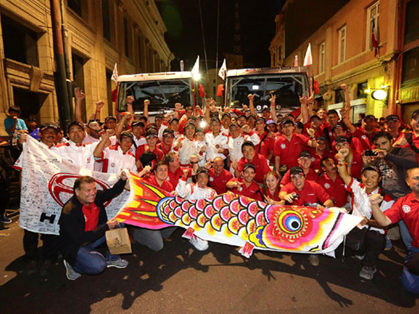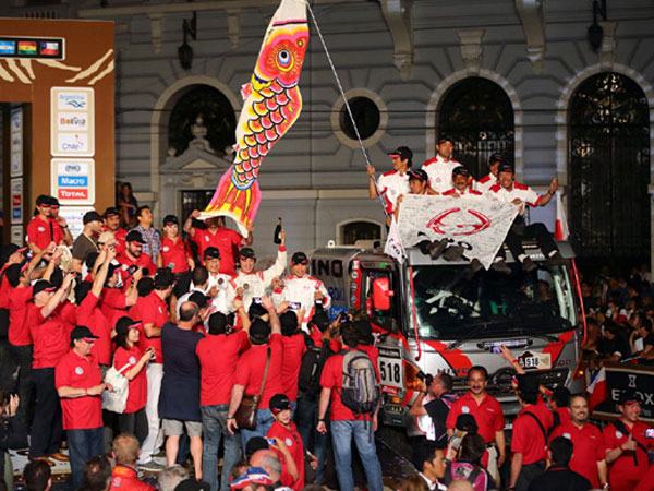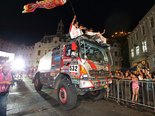 On January 18, contestants raced on a 157km SS in the final stage of Dakar Rally 2014 that took them from La Serena to Valparaiso. After finishing, the racers proceeded to the city center of Valparaiso to take part in a goal ceremony in a plaza facing the port, wrapping up 13 days of intense competition. Of the two HINO500 Series trucks fielded by HINO TEAM SUGAWARA, Car 2 piloted by Teruhito Sugawara and Hiroyuki Sugiura came in 12th in the overall Trucks category and won the championship for the Under 10-litre Class. Car 1 piloted by Yoshimasa Sugawara and Katsumi Hamura came in 32nd overall and 2nd in the Class. This means the team was able to achieve its goal—which was to win Class championship for the 5th straight year—with a 1-2 finish to boot. In terms of overall rankings, Car 2 delivered a great performance coming in at 12th position beating out many of its oversized rivals, showcasing the excellent performance of their new racing truck, which was the culmination of the team's development efforts.