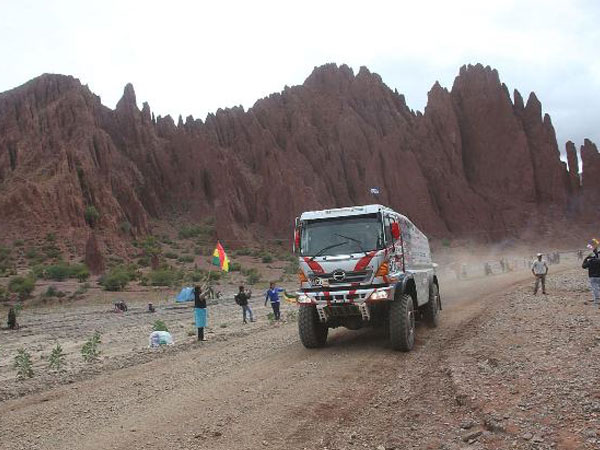 The itinerary for Jan. 6 took contestants from Tupiza to Oruro, both in Bolivia, where teams raced a 219km SS in the intermountain areas near Uyuni. While the original plan called for two SSs―with a neutral zone near the town of Uyuni in between―for a total SS distance of 438km, organizers were forced to cancel the second half as the terrain was seriously affected by rain that had been falling for the last few days. As a result, all contestants headed for the bivouac in Oruro on a liaison route.