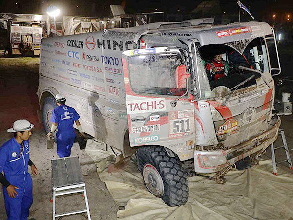 On Jan 16, Dakar Rally 2018 competition resumed this day on a two-segment SS between Salta and Belén with a total timed distance of 372 kilometers. HINO TEAM SUGAWARA's HINO500 Series Car 2 piloted by Teruhito Sugawara and Mitsugu Takahashi finished the SS at 11th in the overall trucks category.