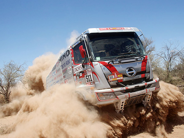 On Jan. 19, Dakar Rally 2018 contestants raced a two-segment SS for a total timed distance of 368 km between San Juan and Córdoba. The rally has now moved on to Córdoba where the final finish line is to be set up. The HINO500 Series Car 2 entered by HINO TEAM SUGAWARA in the trucks category, and piloted by Teruhito Sugawara and Mitsugu Takahashi, finished the SS 6th overall for an accumulated overall position at 5th place (results are provisional).