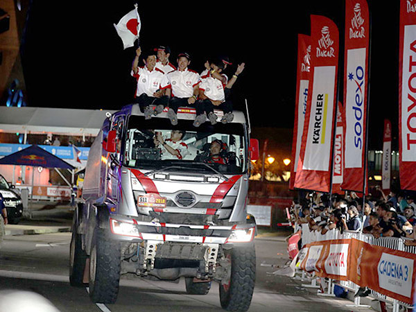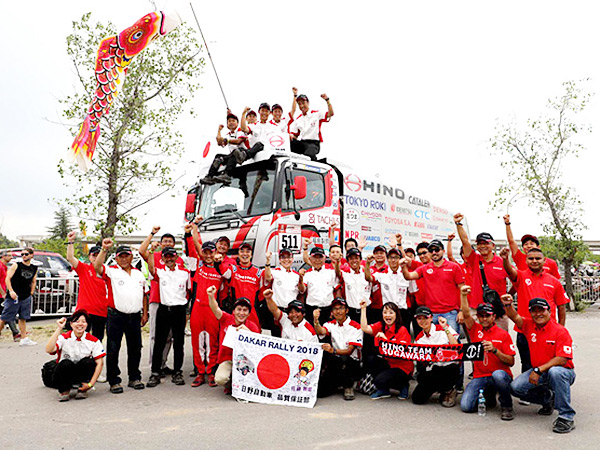 On Jan. 20, Dakar Rally 2018 contestants raced their final SS on the outskirts of Córdoba, Argentina on a looped course that took them to finish line back in Córdoba. This concluded all 15 days and 14 stages of the competition. In the early stages of the rally, HINO TEAM SUGAWARA was left with only one of the two HINO500 Series trucks that they entered due to an ill-fated problem which forced Car 1 crewed by Yoshimasa Sugawara and Katsumi Hamura to withdraw from the race. Nonetheless, the Teruhito Sugawara and Mitsugu Takahashi crew on Car 2 delivered stunning performance, achieving the team's 9th straight win in the Under 10-litre Class, and beating out many of its larger rivals powered by 10 litre-plus engines for a ranking at 6th place overall (accumulated).
