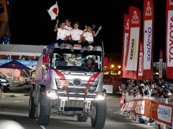 Hino chairman, Yasuhiko Ichihashi, was present at the goal venue to congratulate the team's mechanics and staff members as well as show his appreciation for the work that they had put in over the past year. Once all racing vehicles were assembled at the podium, which was set up in front of the county office building, organizers put on a party to celebrate the success of the event and its 40th anniversary. This concluded all official proceedings of Dakar Rally 2018.