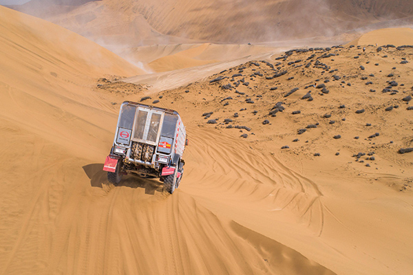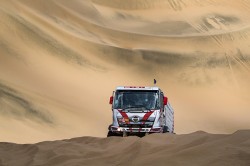 On Jan 11 was the second day of the marathon stage, and contestants raced for a total of 450 km on their way back to Arequipa from their marathon bivouac in Tacna. Racing vehicles started out two at a time from the starting line of the SS (Special Stage), which was set up by the sea at the end of a 42 km liaison route. After racing the 314 km first half, they traveled on a 66 km neutral zone, and finally raced the 136 km second half. Once across the finish line, racers took a 153 km liaison back to Arequipa, making this a long day with 711 km of driving in total.