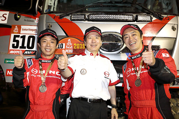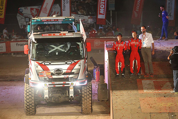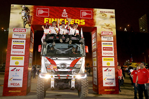 Dakar Rally 2019 contestants raced their final SS (Special Stage) in the outskirts of Pisco, Peru and then took a liaison route for the goal in Lima. This marked the end of ten days of competition. The HINO500 Series truck Car 2 finished at 9th place in the category overall and extended its record of straight wins in the Under 10-litre Class to ten.