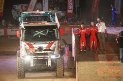 This year's event was held entirely in Peru in South America and was three to four days shorter than previous events. It also featured more sandy stages than usual and course plans that were exceedingly demanding, making it a tougher race than conventional Dakar events. Of the 137 bikes, 26 quads, 130 cars, and 41 trucks that started out of Lima―a total of 334 racing vehicles―only 75 bikes, 15 quads, 76 cars, and 14 trucks made it to the finish line. The fact that only 34% of the trucks were able to finish testifies to the harshness of this year's race.