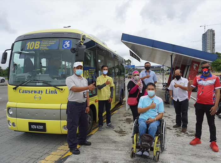 In collaboration with Iskandar Regional Development Authority (IRDA) and Handal Indah, a test ride of Hino Poncho with PWDs passengers representing Persatuan Sokongan Orang Kurang Upaya Johor Bahru was successfully held on 9 July 2020. The ride started from Johor Bahru Sentral to Pandan bus stop which took around 15 minutes.